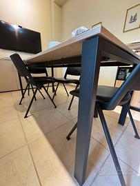 •1 tavolo rettangolare con gambe in metallo nero e piano effetto legno chiaro