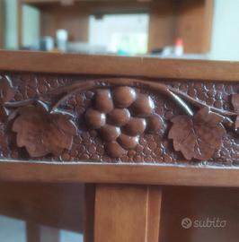 vendo set tavolo e 6 sedie intagliate...data stimata intorno al 1920 circa, in legno, intagli originali, tavolo allungabile con prolunghe originali dell'epoca per misure, foto, video ed info rimango a disposizione...no perditempo ambo i lati...