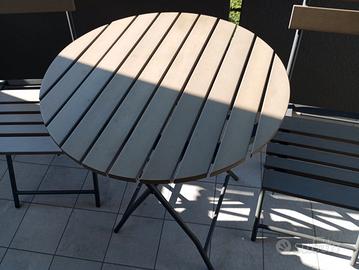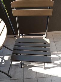 Vendo set composto da 2 sedie e 1 tavolo pieghevoli in acciaio e legno in ottime condizioni.Pratico, salvaspazio e resistente agli agenti atmosferici.