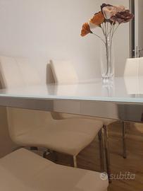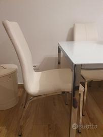Vendo bellissimo set da pranzo composto da tavolo IKEA modello TORSBY e 4 sedie coordinate acquistate da Jysk, causa cambio arredamento. Il set è in buone condizioni, curato con massima attenzione. Caratteristiche del Tavolo (IKEA TORSBY): Dimensioni: 135 x 85 cm (comodo per 4-6 persone). Materiali: Piano in vetro temperato bianco lucido e robusta struttura in acciaio cromato. Plus: Il piano in vetro è molto resistente e facile da pulire. Design minimal che dona molta luminosità all'ambiente. Caratteristiche delle Sedie (Jysk): Modello: Sedie imbottite in ecopelle color panna/crema. Struttura: Gambe in metallo cromato che richiamano lo stile del tavolo. Comfort: Seduta ergonomica e facile da igienizzare. Prezzo: 180€ per il set completo (Tavolo + 4 sedie). Disponibile per il ritiro a mano presso Novara (zona Bicocca). Non effettuo spedizione.