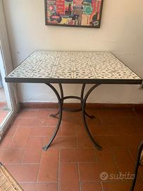 Per ristrutturazione casa vendo tavolo in metallo con decorazione in mosaico con fiori cm 80x80 più due sedie in metallo