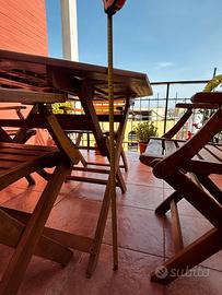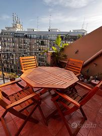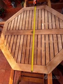 Set: tavolo ottagonale + 4 sedie- legno di acacia.