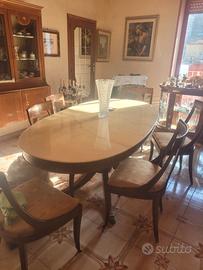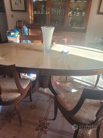 Set tavolo ovale e sedie in marmo e legno