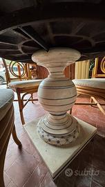 Base: Robusto piedistallo centrale in ceramica tornita e decorata, che garantisce grande stabilità. Sottopiano in metallo.