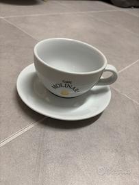 Tazza marcata “Caffè Molinari” adatta a tazze di latte o cappuccini. Set da 6 tazze con piattino