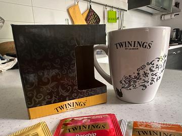 Tazza nuova nella sua scatola originale, corredata da un sacchettino contenente 5 filtri Twinings