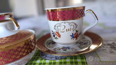 Bellissimo set composto da due tazze da tea Lui & Lei con zuccheriera in ceramica - Winterling Bavaria Ottime condizioni, una delle tazze ha solo un piccolo difetto come si vede in foto. Ritiro a mano oppure spedizione