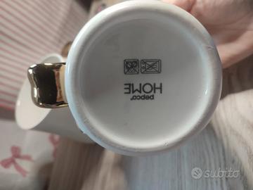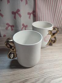 Set di 2 tazze coquette in ceramica con manico a fiocco dorato romantiche e chic perfette per San Valentino regalo coccola per te o per una persona speciale. Dipinte a mano, nuova collezione San Valentino Pepco, 360 ml