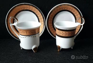 Le tazze hanno un aspetto elegante e sono perfette sia per una collezione che per una bella tavola apparecchiata. Sono particolarmente belle se servite con una tovaglia bianca o crema. Un'idea regalo di grande effetto per una coppia, un oggetto d'arredo interessante ed elegante in un boudoir o in cucina.