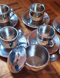 Vendo set da 12 pezzi AMC comprendenti : - 12 tazzine in acciaio 18/10 - 12 piattini in acciaio 18/10 - Zuccheriera in acciaio 18/10 Pezzi quasi introvabili AMC Prezzo non trattabile Consegna SOLO a mano