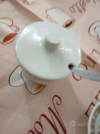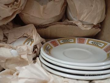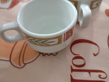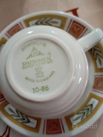 Elegante set di 12 tazzine da caffè con i relativi piattini e zuccheriera con cucchiaino perfette per ogni occasione. - Design raffinato con decorazioni. - Realizzate in ceramica di alta qualità. - Ideali per servire caffè e altre bevande calde. Si tratta di un servizio da caffèDudsonin porcellanaSuper Vitrified. Il modello fa parte della lineaArmorlite. Sono stati prodotti in Inghilterra. La data di produzione indicata dal codice èottobre 1986. Sono articoli da collezione.