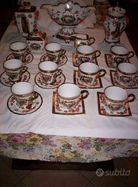Vendo set tazzine da caffè/thè in porcellana marca New Art in perfetto stato come da foto,composto da: 2 caffettiere,1 lattiera,1zuccheriera,1 portafrutta,11 tazzine,11 piattini.(Manca un coperchio alla lattiera...Prezzo da concordare...No perditempo...