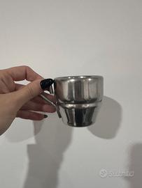 Set di 8 tazzine con corrispettivi piattini, in acciaio inox 18/10, brevettato pat petting