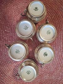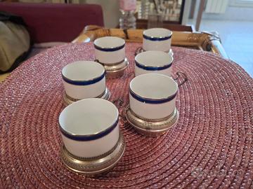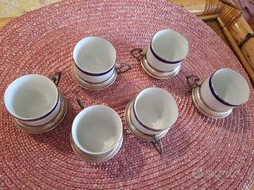 Vendo set di 6 tazzine da caffè in porcellana Bavaria con montatura in metallo e 3 piattini decorati Venetian Lagoon – Fine Porcelain