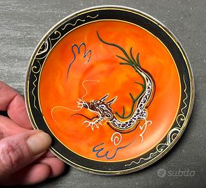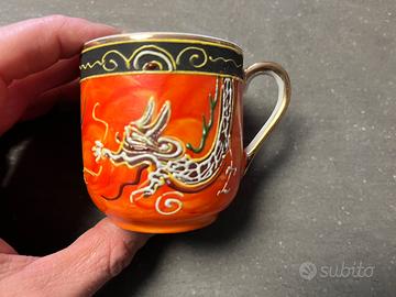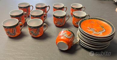 Set di 11 tazzine e piattini caffè originali cinesi dipinte a mano con decoro in rilievo bellissimi colori