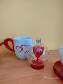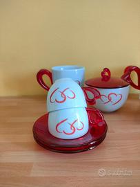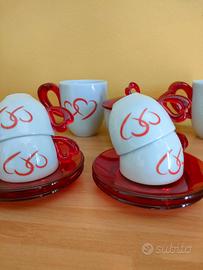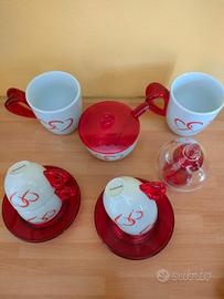 Vendo set composto da n. 4 tazzine caffè con piattino e n. 2 tazze thè/latte d.ella Guzzini, completo di zuccheriera