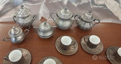 Set tazzine più vari accessori. 2 tazzine sono sbeccate