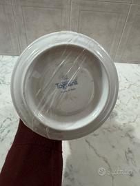 Set di 6 tazzine da caffè in porcellana bianca e blu con sei piattini, contrassegnati dallo stemma dell’Aeronautica Militare Italiana. Il design include l’aquila turrita, simbolo distintivo dei piloti militari italiani. Marca Tognana ottima qualità Nuovi #military #seal #navi #airforce