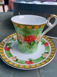 Nuovo mai usato set da 6 + zuccheriera, porcellana vintage LG Porcelaine DEC a la main con inserti in oro