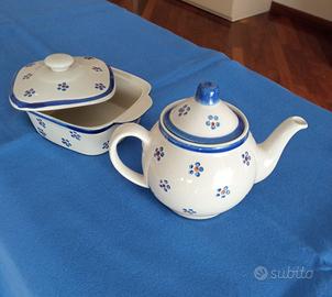 Elegante set composto da teiera e biscottiera, perfetto per aggiungere un tocco di stile alla tua tavola. Teiera e biscottiera Old England stoneware, ideali per la vostra colazione. Mai usati. (Solo la teiera, nuova, costa 23 euro)