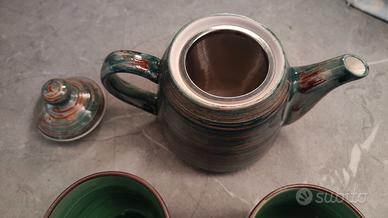 set di teiera in ceramica smaltata stile giapponese, con filtro. Mai usato!!