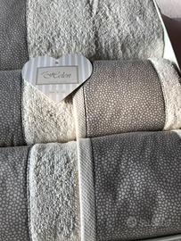 SET IN CONFEZIONE ORIGINALE COMPOSTO DA 1 TELO BAGNO, 2 ASCIUGAMANI, 2 OSPITI SPUGNA DI COTONE