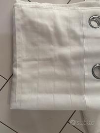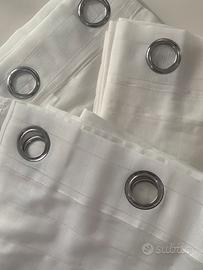 Vendo set di tende così composto: tre tende bianche a tinta unita, con fantasia a quadri, misure (per ogni tenda): 140x280cm. Attacco ad anelli in acciaio.