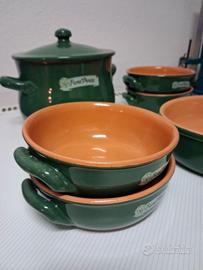 vendo set di terracotta nuovo mai usato composto da N.4 ciotole N.1 pentola con coperchio N.1 padella con manico