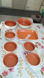 vendo bellissimo set di terracotta modello ciliegie Piral con zuppiera, insalatiera pirofila da forno e 5 ciotole rotonde anni 80 . attenzione 5 ciotole non 6