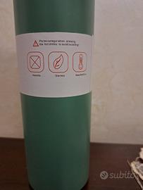 borraccia di acciaio inossidabile verde e due tazze abbinate, puo tenere la temperatura delle bevande calde o fredde