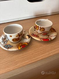 Set angelo soke, 3 angioletti con cuore di legno e 2 tazzine