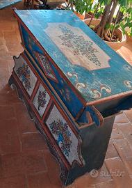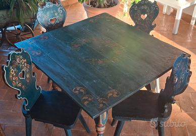 Vendo set arredo Stube tirolese completo, tavolo, 4 sedie, madia e piattaia. Arredo dipinto a mano. Solo ritiro, no spedizione.