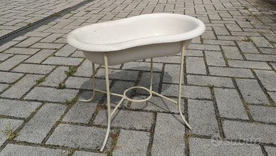 Set vintage da toeletta da camera degli anni 40 50, del periodo nel quale i bagni in casa non esistevano! Tutto laccato bianco, in buone condizioni, composto da svariati catini di diverse dimensioni, brocche, un bidet, una struttura di supporto, due vasi da notte. Perfetto come completamento di arredo, come porta fiori porta vasi. Opportunamente verniciato, perfetto anche come appoggio per laptop o altri apparati elettronici. Possibile vendere pezzi doppi come sfusi. La struttura di sostegno viene venduta solo corredata dai propri accessori al prezzo di euro 100, 00