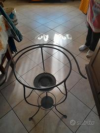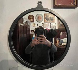 Completa il tutto uno specchio di 45 cm di diametro con cornice anch'essa in ferro battuto a mano, vendibile anche singolarmente.