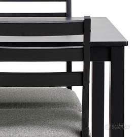 Il set include un tavolo rettangolare resistente e quattro comode sedie con seduta imbottita, ideali per garantire comfort durante i pasti quotidiani.