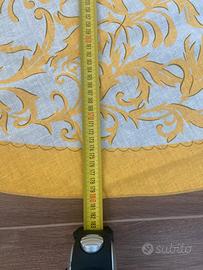 Tovaglia rotonda vintage con vantasia color giallo/senape, lunghezza diametro 180 cm.