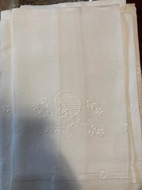 Set tovaglie bagno grande e piccola in prezioso Lino ricamato a mano da corredo . Prezzo a set
