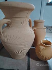 Set anfore d'arredo per giardini coperti o da interno, di vare altezze 20/35/50 cm Creta dipinta.