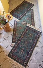 set tre tappeti scendiletto in pura lana con effetto seta colori caldi e raffinati,Tappeti di gran classe si inseriscono perfettamente sia ad un interno classico che ad uno moderno.