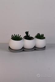 Porta un tocco di verde e design ovunque con questo trio di vasi uniti, perfetti per piante vere o finte. Un oggetto compatto e moderno, pensato per decorare scrivanie, mensole, tavoli e angoli relax con stile e semplicità.