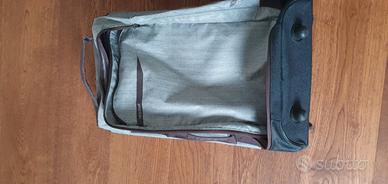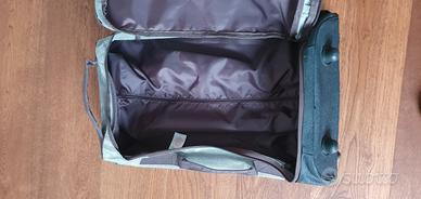 Set di valigie salvaspazio newteel (Decathlon), misure 36Lx66Hx24P (trolley da stiva) e 34Lx52Hx22P (trolley da cabina). Le due valigie sono in condizioni perfette; rivestimento integro, ruote integre, cerniere integre maniglie integre. Per la dimensione la spedizione non è conveniente, ma se l'acquirente è interessato, valutiamo insieme.