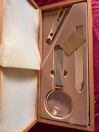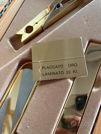 Set ufficio placato oro 22 kt Taglia carte Lente di ingrandimento Molletta ferma carte