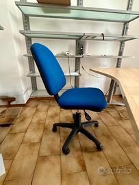 •1 sedia girevole con ruote imbottita, colore blu, regolabile