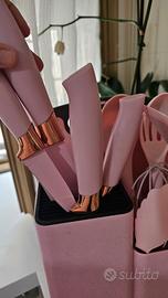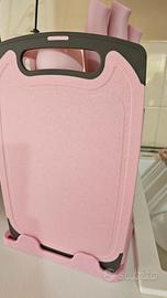 bellissimo set utensili da cucina , compreso di tagliare , coltelli e mestoli mai usati . usato solo le forbici presenti nel set . colore rosa .