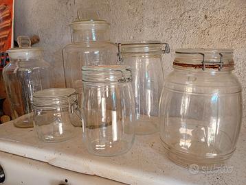 Dispongo di una trentina di vasi in vetro vintage, tutti in perfetto stato. Ci sono varie forme e capienze: piccole medie e grandi. Le foto sono solo un esempio e se interessati si possono inviare ulteriori foto. E' preferibile la vendita di tutto il lotto ma si possono prendere in considerazione anche acquisti parziali.
