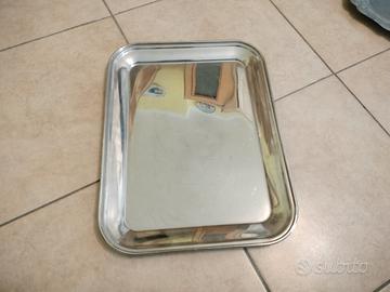 4 vassoi acciaio, molto robusti. Misure rettangolare grande 40x30 rettangolare piccolo 40x20 ovale lineare 41x27 ovale lavorato 40x27 Propongo in blocco € 10, oppure singolo ad € 3