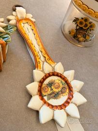 Il design presenta girasoli e margherite tridimensionali in ceramica.