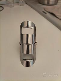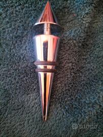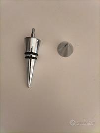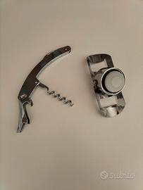 Set vino 3 Pz. Inox: -Un cavatappi da sommelier in acciaio inossidabile con leva a doppia cerniera per facilitare l'estrazione del tappo. Un tappo per spumante o champagne progettato per sigillare ermeticamente le bottiglie pressurizzate mantenendo la pressione e l'effervescenza. Un tappo versatore o tappo decorativo con punta conica per chiudere le bottiglie di vino ferme dopo l'apertura. Realizzati in metallo resistente, offrono un design classico e funzionale per il servizio del vino. Buonissime condizioni, il cavatappi presenta qualche segno di usura.