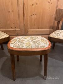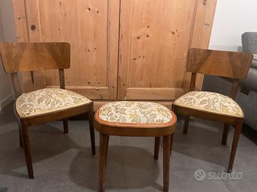 Vendesi splendido set d'arredo originale degli anni '50, composto da due sedie e uno sgabello coordinato. Un perfetto esempio di design italiano del dopoguerra, caratterizzato da linee leggere, eleganti e senza tempo.