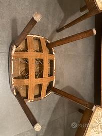 Rivestimento: Sedute imbottite con pregiato tessuto damascato originale dell'epoca, conservato con cura.